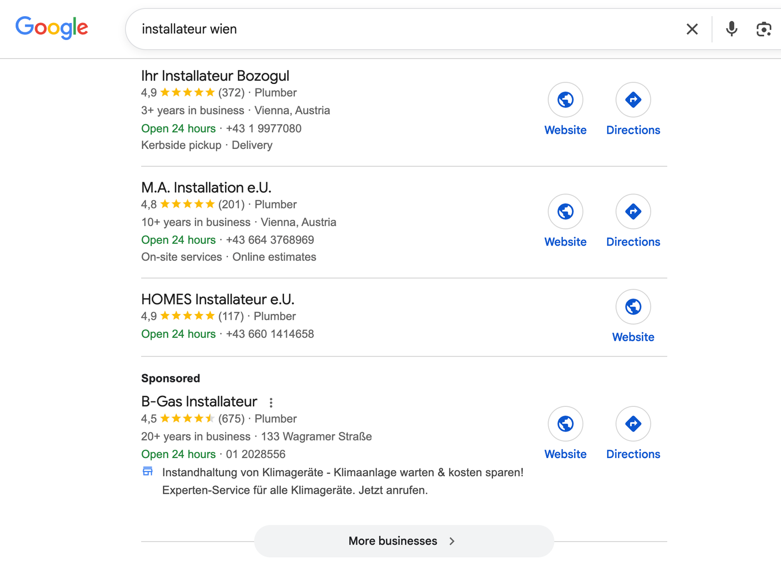 “Durch Ads konnten wir bereits im ersten Monat über 5 neue Aufträge abschließen und nach 6 Monaten sind wir organisch auf Platz #1 auf Google in unserer Region. Spitze!!!”