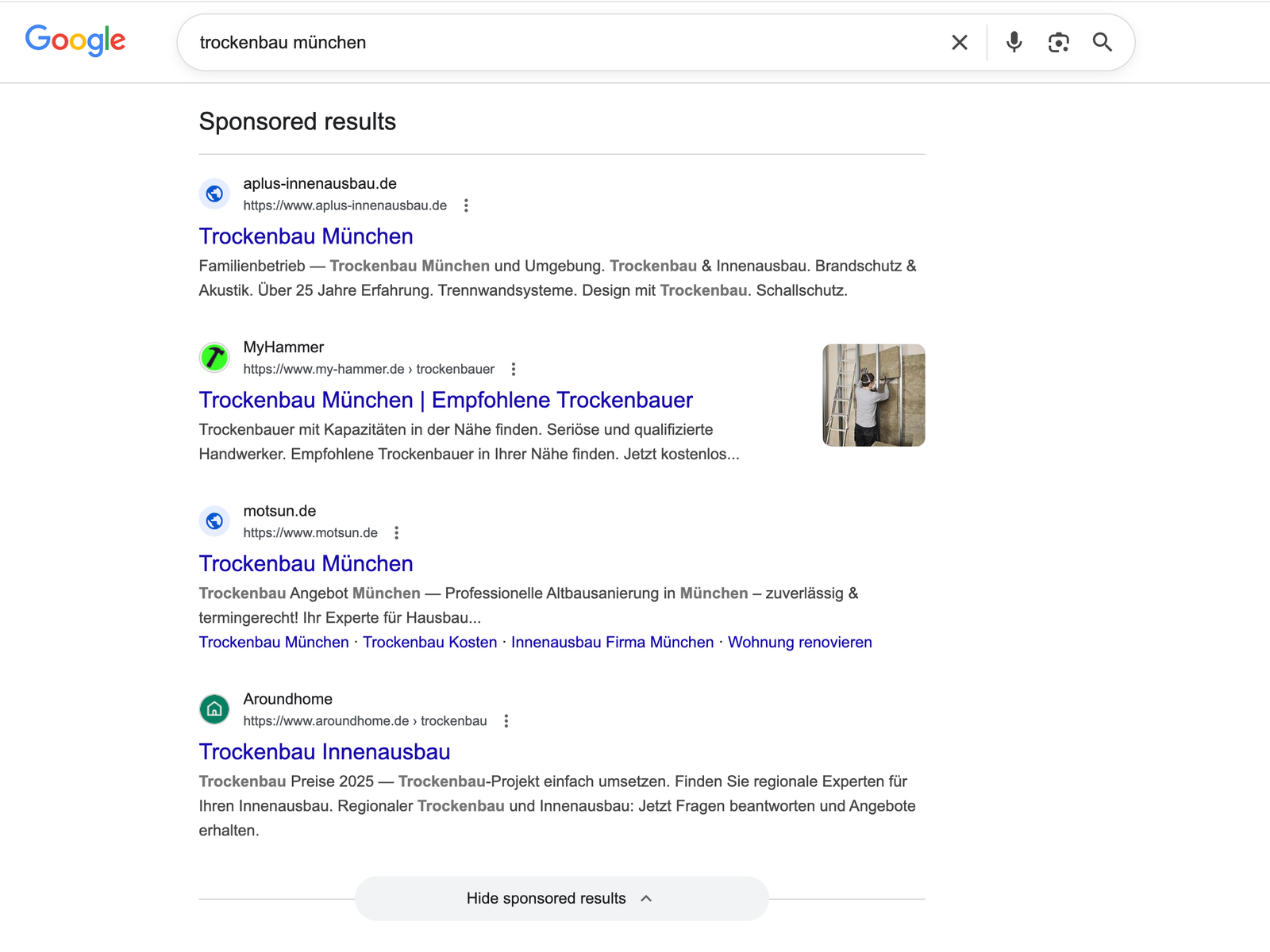 “Google Ads sind in unserer Branche sehr teuer. Jedoch konnten wir durch die Zusammenarbeit mit Auftragsschmiede unsere Kosten stark senken bei gleichbleibenden Anfragen.”